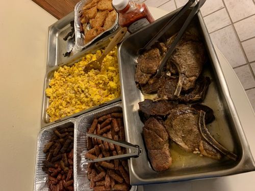 - steak (t-bones and OR Ribeyes) and eggs with Country fried patatos